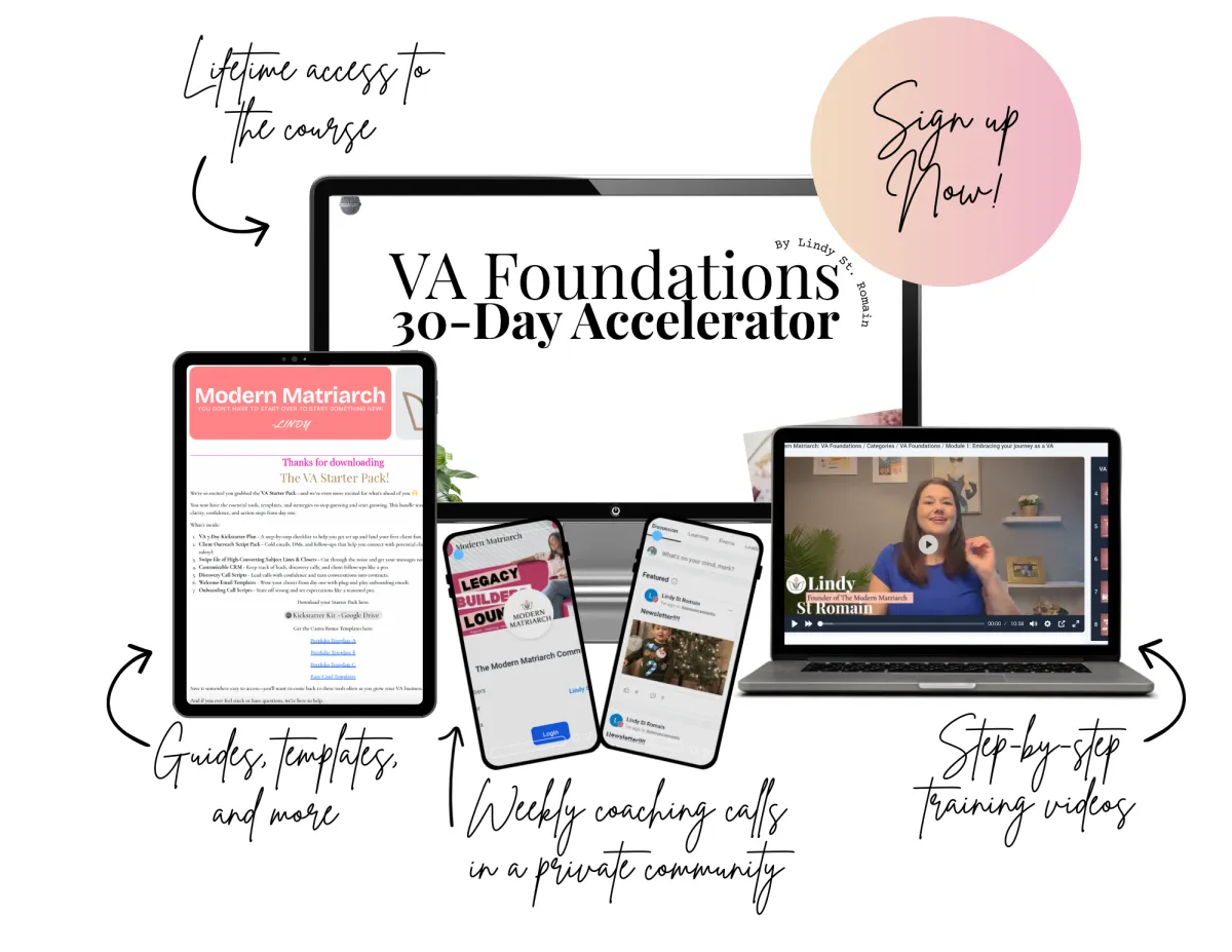 You’ll get instant access to VA Foundations, our beginner-friendly, step-by-step course that teaches you the exact skills clients are hiring for right now.